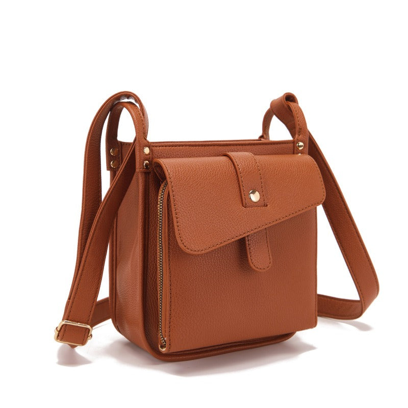 Mara Flap Crossbody Phone Bag - Cognac Brown