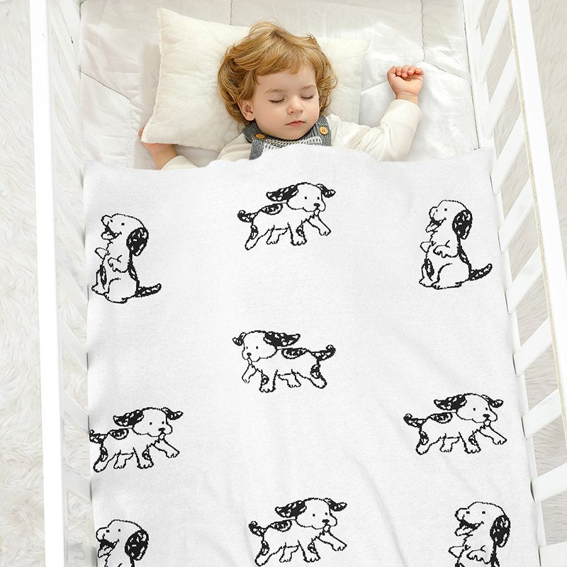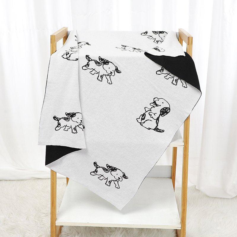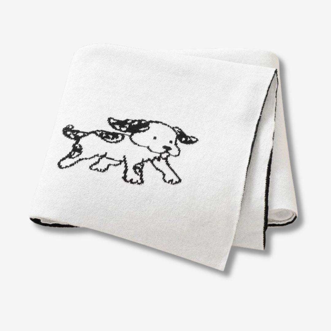 Gestrickte Babydecke aus Baumwolle mit Hundemotiv